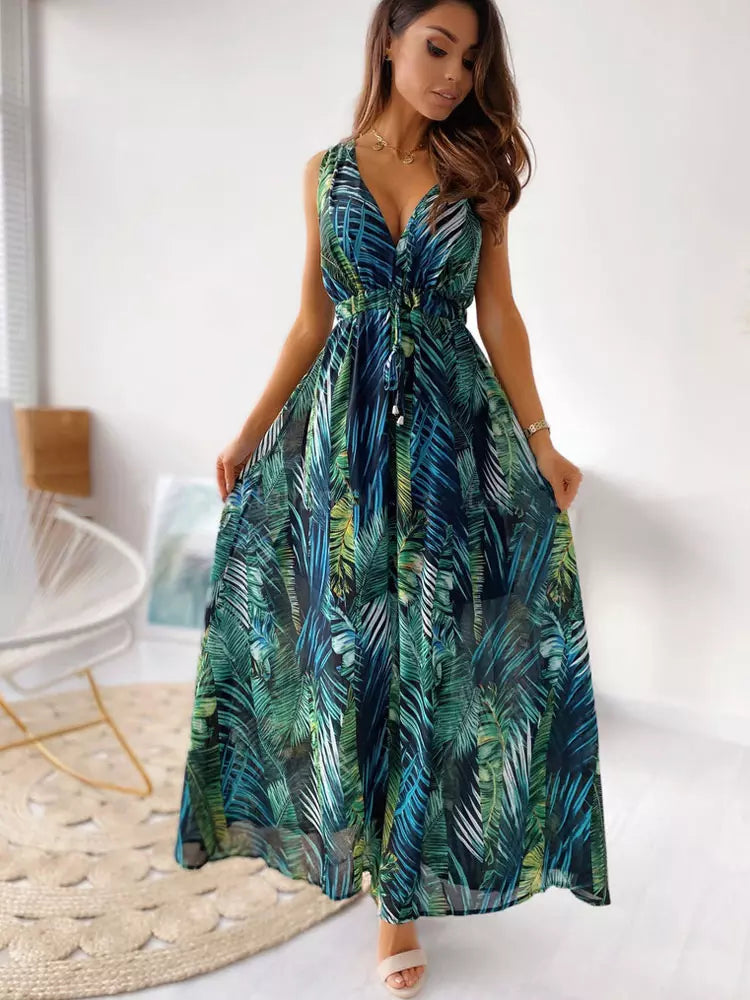 Avec son imprimé luxuriant sur fond profond, cette robe longue dessine une allure de déesse moderne. Vous ne portez pas seulement une robe ; vous incarnez une élégance solaire et mystérieuse, prête à captiver du matin au soir. Sa fluidité exceptionnelle accompagne chacun de vos pas d'un mouvement gracieux et aérien.